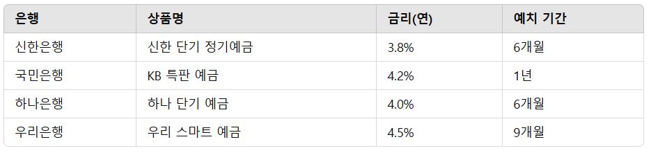 ✔ 목돈을 단기간 안전하게 굴리고 싶다면 → 단기 예금 활용