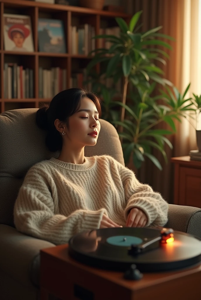 조용한 공간에서 눈을 감고,