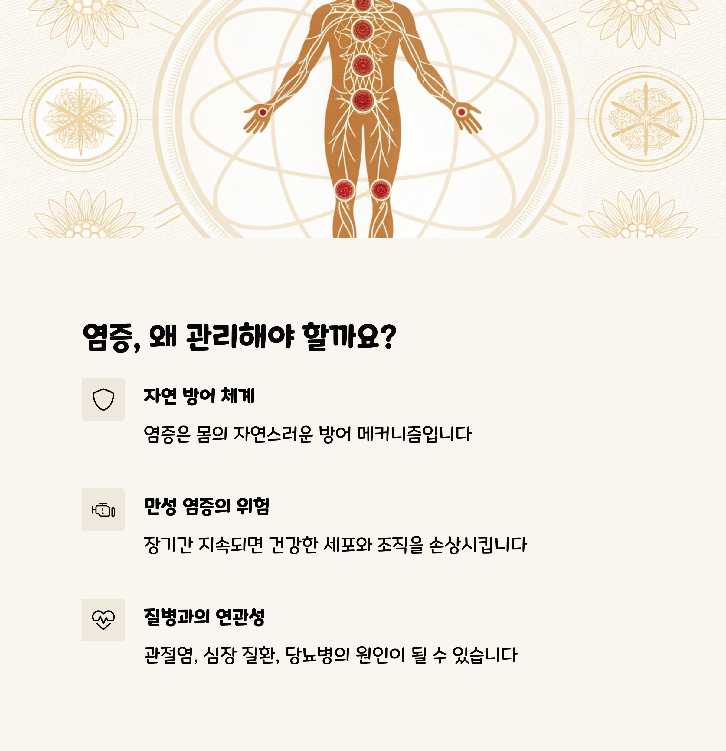 염증은 우리 몸의 자연스러운 방어 체계입니다. 하지만 만성 염증은 관절염, 심장 질환, 당뇨병 등 다양한 질병의 원인이 될 수 있습니다. 2025년 세계보건기구(WHO) 보고서에 따르면, 만성 염증은 전 세계 주요 사망 원인의 60% 이상과 관련이 있다고 합니다.