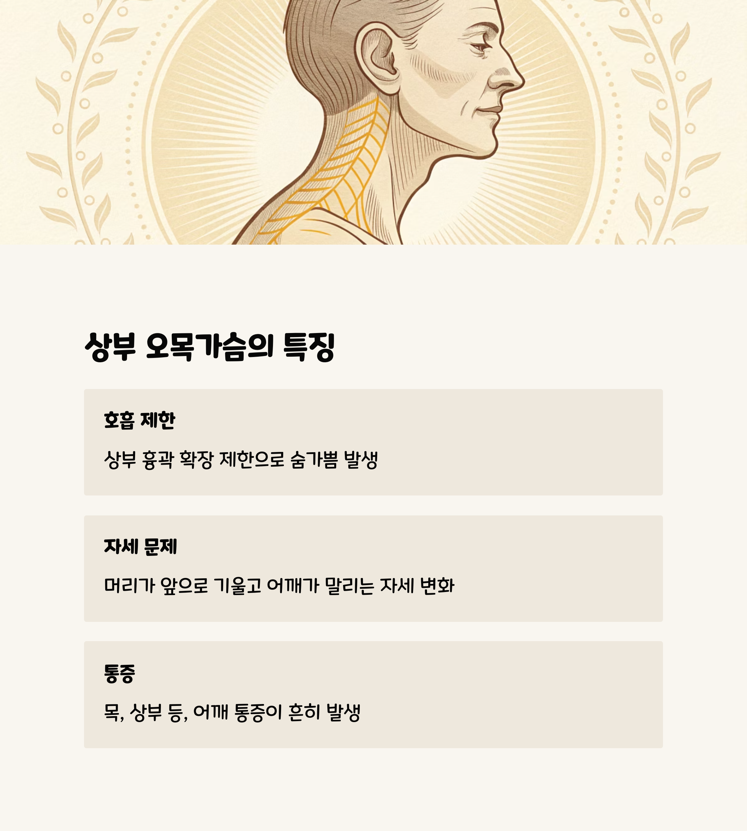 상부 오목가슴 환자들은 종종 자세 문제를 동반하는 경우가 많습니다. 머리가 앞으로 기울어지고, 어깨가 앞으로 말리는 전방 굽은 자세(forward head posture)가 특징적입니다. 이러한 자세 변화는 시간이 지남에 따라 만성적인 근골격계 문제로 이어질 수 있으며, 두통이나 턱관절 장애와 같은 이차적인 증상을 유발할 수도 있습니다.