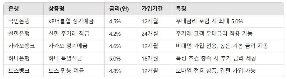 3. 2025년 추천 고금리 예·적금 상품 (실시간 업데이트 필요!)