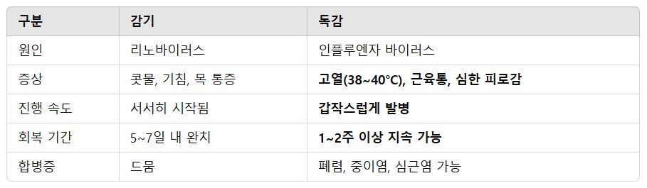 📌 독감과 감기의 차이점