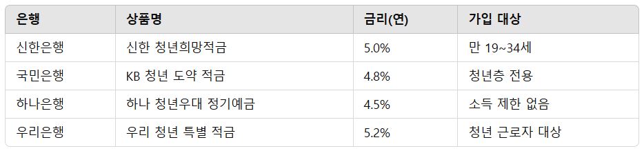 ✅ 3) 시중은행 청년 전용 고금리 적금 (특판 상품 포함!)
